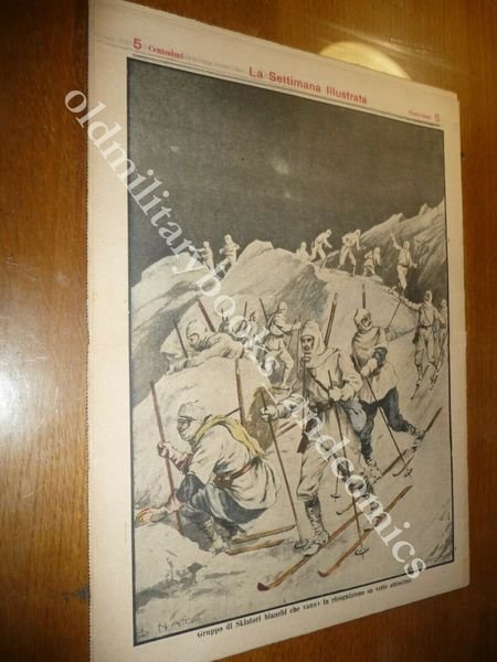 DESCRIZIONE: La Settimana Illustrata, Milano, Anno VII n. 12 (26 marzo 1916). COPERTINA: Una battera di artiglieria che si sposta vincendo le difficoltà causate dal maltempo. RETRO: UN GRUPPO DI SKIATORI BIANCHI CHE VANNO IN RICOGNIZIONE SU VETTE ALTISSIME CONDIZIONI: Buone/Ottime. PESO / WEIGHT: 200 gr. without package