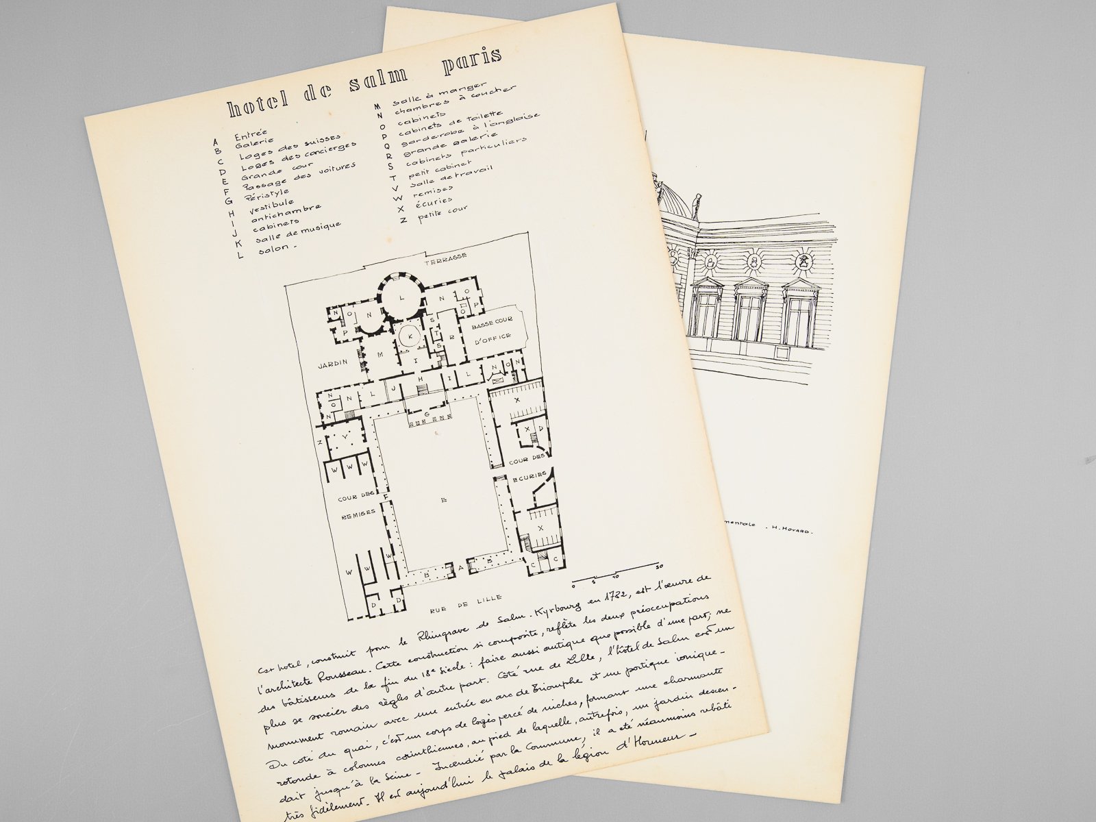 Un Hôtel du XVIIIe [ Hôtel de Salm par Rousseau rue de Lille à Paris - Dossier manuscrit d'un élève architecte de 1ère classe de l'ERAB (Ecole Régionale d'Architecture de Bordeaux) en 1961 ]