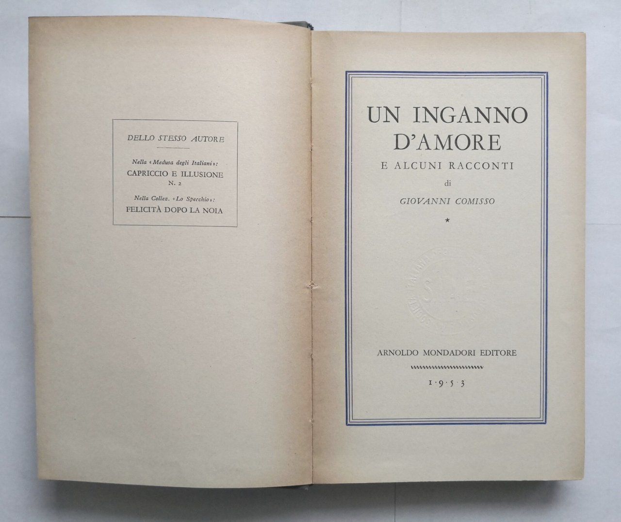 UN INGANNO D'AMORE e alcuni racconti di Giovanni Comisso 1953 Mondadori Libro