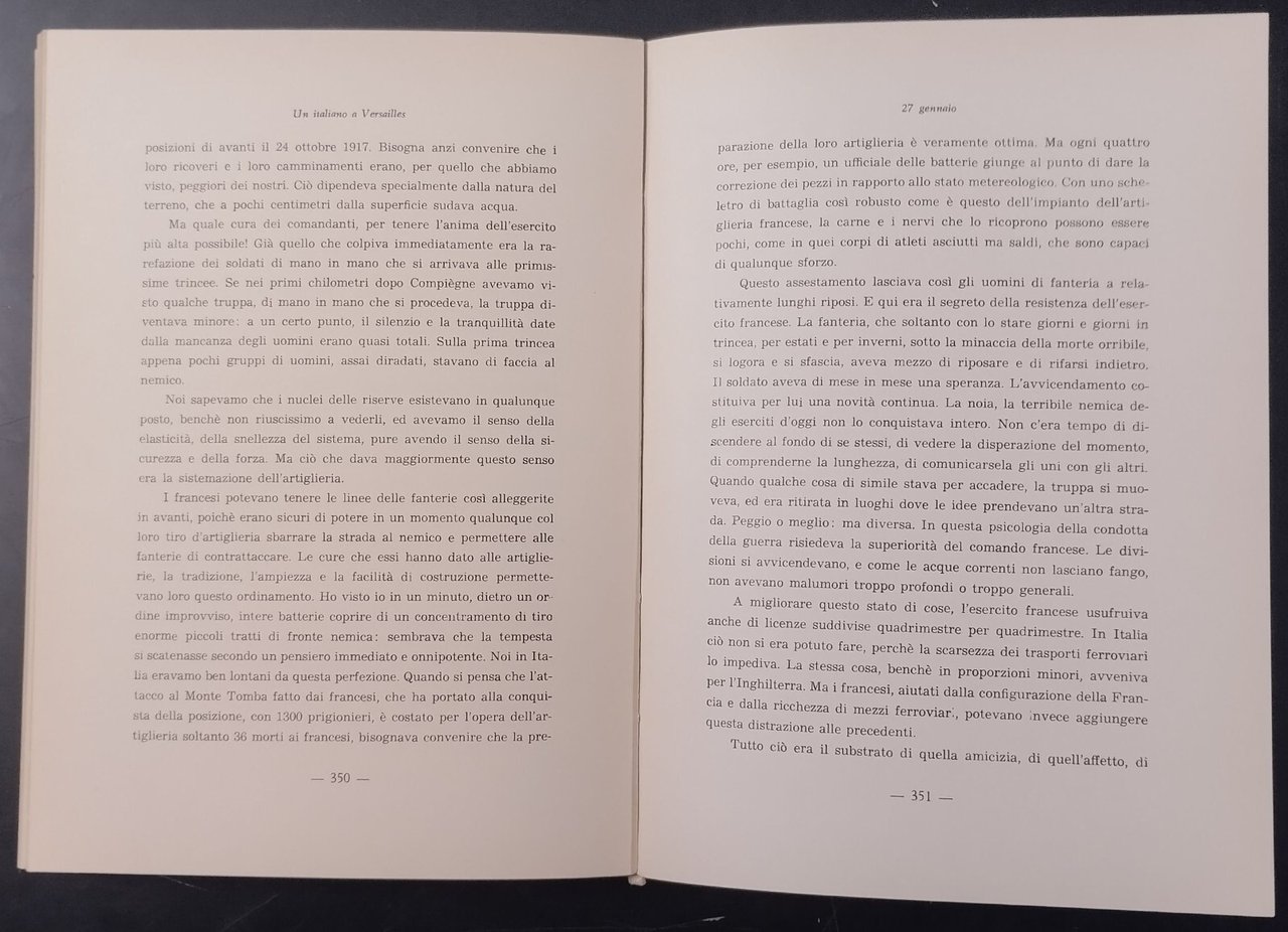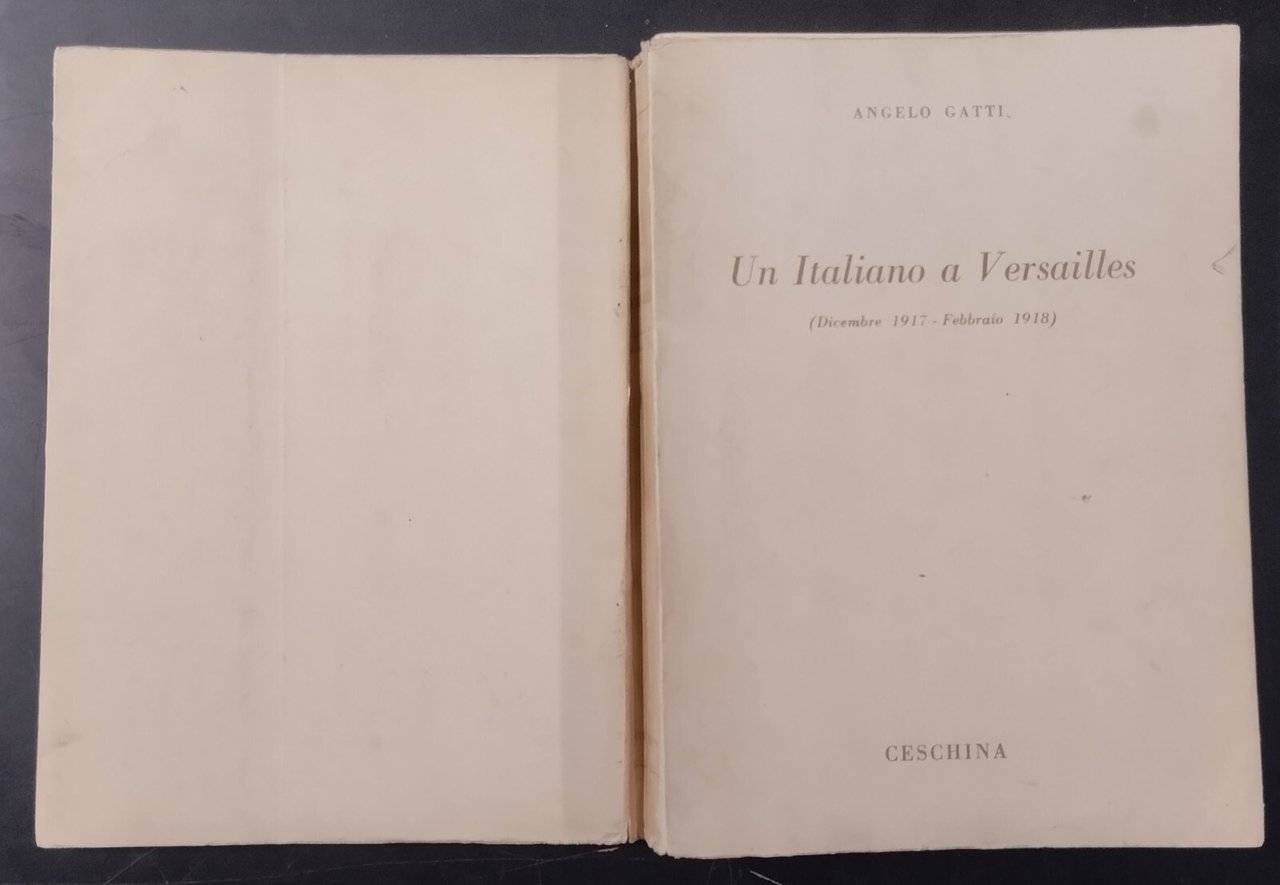 UN ITALIANO A VERSAILLES (Dicembre 1917- Febbraio 1918) di Angelo Gatti, con una premessa del Generale Raffaele Cadorna. Ceschina Editore, 1958. 463 pagine, fotografie in bianco e nero furi testo. Copertina editoriale in brossura. Stato di conservazione: molto buono (pagine normalmente ingiallite, copertina sporca) Libro usato saggistica I guerra mondiale militaria