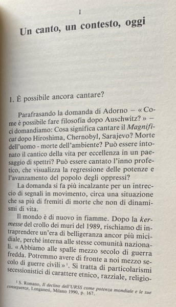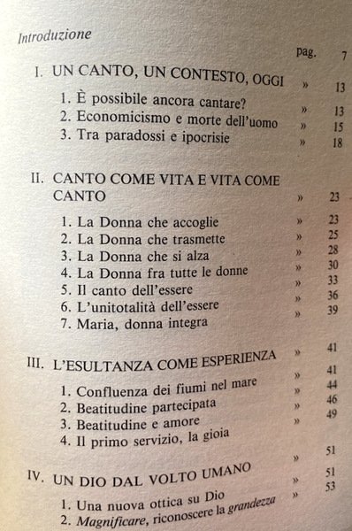 Soggetti: Religione, Cristianesimo, Teologia cristiana, Filosofia, Musica sacra, Canto, Canti pasquali, Celebrazioni, Preghiere, Feste, Riti, Rituali, Chiesa, Spiritualità, Domenica tra l'Ottava di Natale, Tempo Ordinario, Quaresima, Epifania del Signore, I miei occhi hanno visto la tua salvezza, Messa della Notte, Avvento, Pasqua, Luca, Dio, Grazie, Ascensione, Santissima Trinità, Sia che vegliamo sia che dormiamo, Canzoni religiose, Bibbia, Sabato Santo, Veglia Pasquale, Le mani di Gesù e le nostre mani, Maria Madre, Cristo, Vangelo, Salmi, Gioia, Grazia, Salvezza, Perdono, Peccati, Remissione, Espiazione, Fede, Fedeli, Giudizio, Giustizia, Mistero, Padre, Figlio, Spirito santo, Fiumi di babilonia, Cetra, Organo, Deportati, Canzoni di gioia, Martiri, Libertà, Schiavitù, Redenzione, Sacrificio, Passione, Amore, Umanità, Uomini, Terra, Peccatori, Liberazione, Oppressori, Cantateci i canti di Sion, Sigillo, Beato te, Simone, Giona, Sinfonie, Nona sinfonia, Felicità, Ricchezza interiore, Celebrazioni, Palme, Venerdì, Settimana Santa, Via lucis, Elevazione, Beatitudine, Dolore, Speranza, Sacramenti, Corpo, Eucaristia, Lodi, Laudi, Lode, Inni, Antropologia religiosa, Annunciazione, Donne, Cantare, Magnificenza, Femminilità, Profezie, Pace, Umanesimo, Bellezza, Solidarietà, Politica, Resistenza, Femminismo, Etica, Morale, Lettere, Encicliche, Fromm, Giovanni Paolo II, Gadamer, Fukuyama, Dahrendorf, Rivoluzione, Bibliografia, Riferimento, Saggistica, Libri Vintage Fuori catalogo, Abbagnano, Bergson, Bernardo di Chiaravalle, Blondel, Clément, Dupont, Huizinga, Heschel, Horkheimer, Guardini, Guitton, Laurentin, Lévinas, Lutero, Malraux, Margaret Mead, Merleau-Ponty, Nédoncelle, Neumann, Nietzsche, Mounier, Karl Rahner, Paolo VI, Rostier, Theilard de Chardin, Vattimo, Zerwick, Moltmann, Magnificat anima mea Dominum, Elisabetta, Giuda, Ain Karem, Gerusalemme, Vulgata, Liturgia delle ore, Vespri, Canto gregoriano, Simeone, Benedictus, Zaccaria, Nunc dimittis, Salve Mater Salvatoris, Episodi biblici, Mariologia, Religion, Christianity, Christian theology, Philosophy, Sacred music, Singing, Easter chants, Celebrations, Feasts, Rites, Rituals, Church, Spirituality, Sunday, Octave, Christmas, Ordinary Time, Lent, Epiphany of the Lord, My eyes have seen your salvation, Midnight Mass, Advent, Easter, Ascension, Holy Trinity, Whether we are awake or asleep, Religious songs, Bible, Holy Saturday, Easter Vigil, Jesus' hands and our hands, Mother Mary, Christ, Gospel, Psalms, Joy, Grace, Salvation, Forgiveness, Sins, Remission, Atonement, Faith, Faithful, Judgement, Justice, Mystery, Father, Son, Holy Spirit, Rivers of Babylon, Zither, Deportees, Songs of Joy, Martyrs, Liberty, Slavery, Redemption, Sacrifice, Passion, Love, Humanity, Men, Earth, Sinners, Liberation, Oppressors, Sing us the songs of Zion, Seal, Blessed are you, Simon, Jonah, Symphonies, Ninth Symphony, Happiness, Inner Riches, Celebrations, Palms, Friday, Week Holy, Elevation, Beatitude, Pain, Hope, Sacraments, Body, Eucharist, Lauds, Praise, Praise, Hymns, Religious anthropology, Annunciation, Women, Sing, Magnificence, Femininity, Prophecies, Peace, Humanism, Beauty, Solidarity, Politics, Resistance, Feminism, Ethics, Letters, Encyclicals, John Paul II, Revolution, Bibliography, Reference, Non-fiction, Books Out of Print, Bernard of Clairvaux, Luther, Paul VI, Prayers, Luke, God, Thank You, Elizabeth, Jude, Jerusalem, Vulgate, Liturgy of the hours, Vespers, Gregorian chant, Simeon, Zechariah, Biblical episodes, Mariology