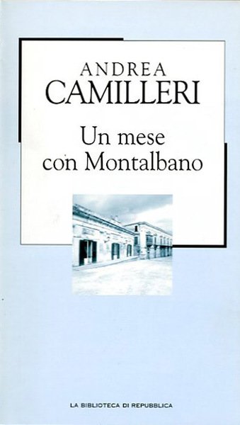 317 p. ; 21 x 13 cm. La Biblioteca di Repubblica. Novecento, 78. "Un mese con Montalbano" è una raccolta di trenta racconti di Andrea Camilleri, pubblicata per la prima volta nel 1998. Il titolo si collega al numero di racconti, che coinvolgerebbero il lettore per un mese esatto, leggendo un racconto ogni giorno, come afferma lo stesso autore nella nota conclusiva. Sempre a detta dello scrittore, la serie è stata realizzata in poco più di un anno e due mesi, fra il 1º dicembre 1996 ed il 30 gennaio 1998. Gran parte dei racconti sono inediti, mentre altri sono stati pubblicati precedentemente in alcune riviste locali. Supplemento a "La Repubblica". Legatura editoriale, coperta in cartone rigido telato di colore azzurro, con impresso il titolo in nero al dorso, muto al piatto. Sovraccoperta di colore azzurro, illustrata a colori. Codice libreria 5057.