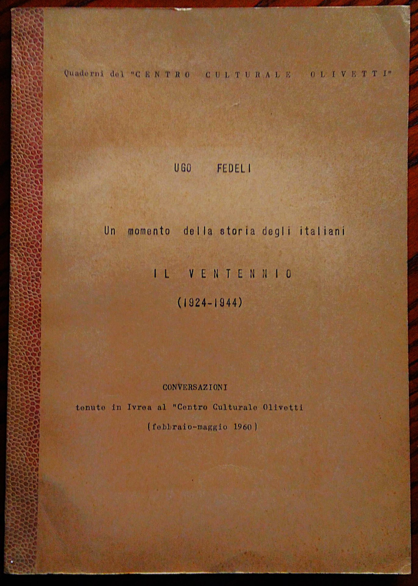 Un momento della storia degli italiani il ventennio (1924-1944). Conversazioni tenute in Ivrea al "Centro Culturale Olivetti" (febbraio-maggio 1960).