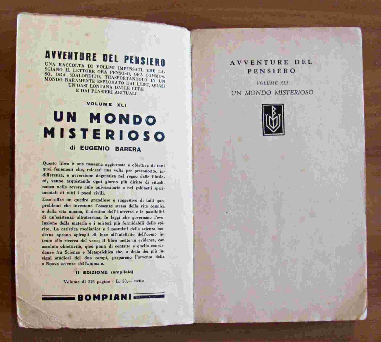 Editore Bompiani - II edizione 1943. Brossura editoriale con leggere fioriture alla copertina. Interno Come Nuovo. 12x20,5; pp.275. Buonissimo stato. , Molto buono (Very Good)