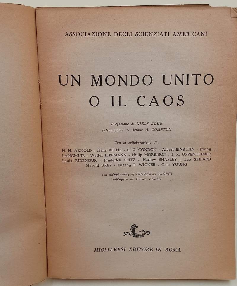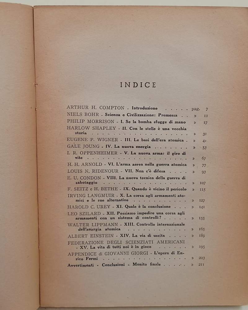 In 8', br. ed., pp. 213, prefazione di Niels Bohr, introduzione di Arthur A. Compton, con un appendice di Giovanni Giorgi sull'opera di Enrico Fermi; bruniture alla cop. e agli interni, taglio sup. polveroso, leg. salda. ***Due to bureaucratic reasons, books dated over 70 years old cannot be immediately exported, please contact us before placing the order.***