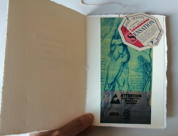 Plaquette formato 20 X 13,5. Pagine 8. Carta uso mano. Con una opera originale di Donato di Pace. EDIZIONE N.2420. Tiratura in 25 esemplari. Bella copia