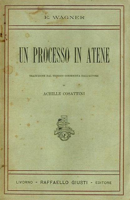 VI, 62, 32 p. ; 20 ч 13 cm. Titolo originale dell'opera: «Eine Gerichtsverhandlung in Athen». Traduzione dal tedesco consentita dall'autore di Achille Cosattini. In calce alla pubblicazione il catalogo storico della casa editrice (febbraio 1907). Brossura editoriale, coperta in cartoncino flessibile con titolo impresso al piatto e al dorso. Segni del tempo alla coperta, al taglio e alle pagine interne (ingiallimento). Codice libreria 4961.