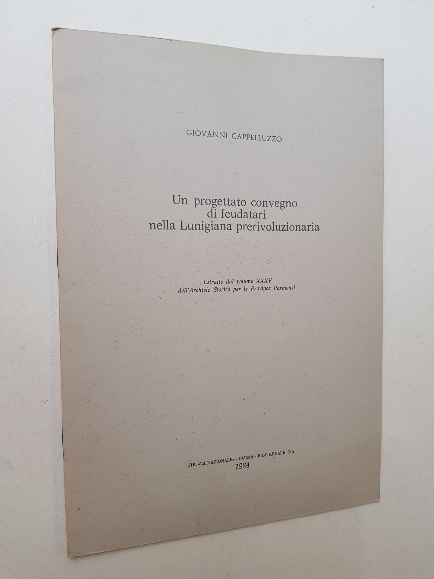 Estratto dal volume XXXV dell'Archivio Storico per le Province Parmensi.<BR>In 8°; pp. 87-99; brossura editoriale; spillato.<BR>CONDIZIONI MOLTO BUONE