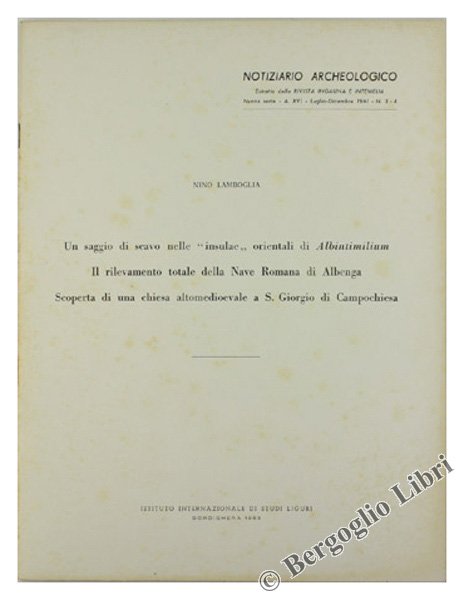 (Codice SH/0241) In 4° (cm 29,5) 7 pp. Estratto dal n° 3/4 - 1961 del Notiziario Archeologico della Rivista Ingauna e Intemelia, con 9 illustrazioni. Brossura editoriale. ~~~ SPEDIZIONE IN ITALIA SEMPRE TRACCIATA