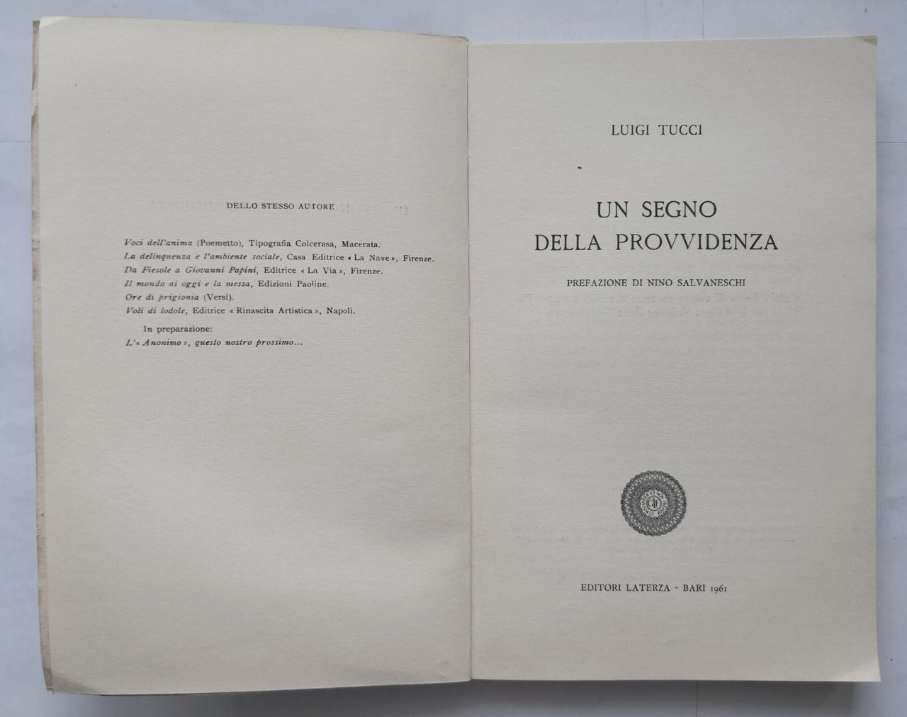UN SEGNO DELLA PROVVIDENZA di Luigi Tucci 1961 Laterza Libro Padre Pio San