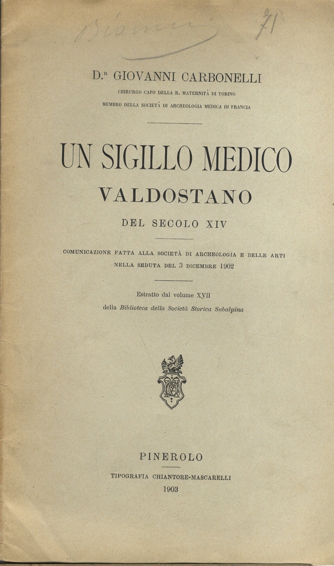 Un sigillo medico valdoastano del secolo XIV