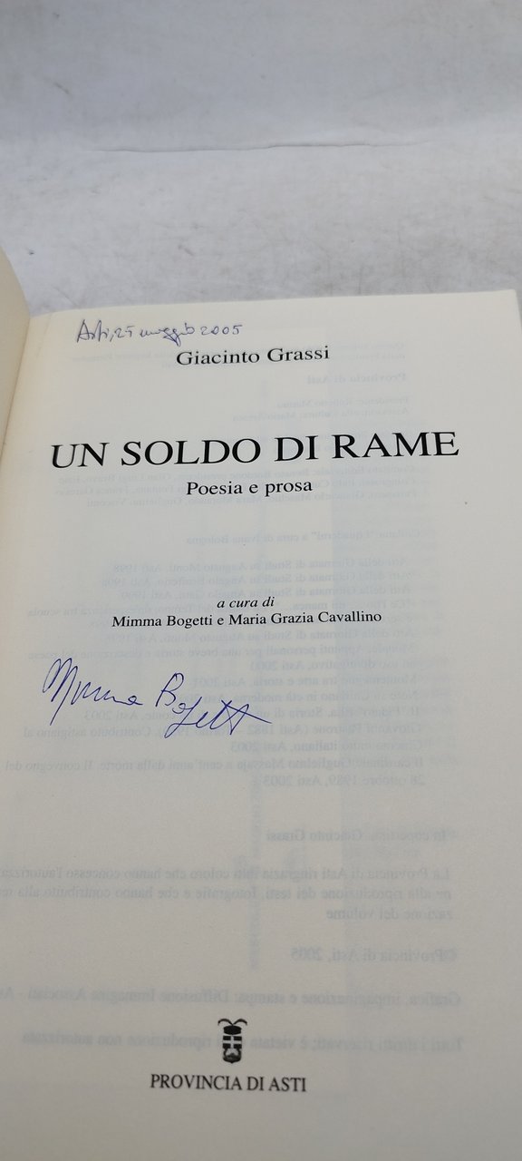 giacinto grassi un soldo di rame poesia e prosa. , provincia di asti 2005 italiano, 450 °°°