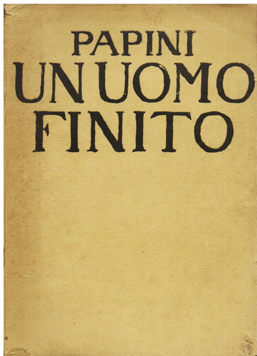 In-8°, pp. (8), 303 + 24 di catalogo della Libreria della Voce, brossura editoriale gialla a stampa nera. Buon esemplare in barbe. Allegato ritaglio di giornale con una recensione del volume scritta da Emilio Cecchi. Reimpressione (6° migliaio; la prima edizione è del 1913) del capolavoro di Papini, nonché uno dei libri più significativi del '900 italiano, resoconto di un tormentato e vorticoso autodidattismo che portò l'autore fiorentino, poco più che trentenne, a rubricarsi già come 'uomo finito', in una confessione orgogliosa eppure sincera e struggente al contempo. Fu forse pensando a questo libro che Borges, in una sua conversazione milanese a casa di Eugenio Montale, ebbe a dire che Papini era l'autore italiano del '900 che maggiormente lo interessava, soggiungendo (in un pieno riscatto dalle ingenerose valutazioni della critica postuma): 'Il solo torto di Papini fu quello di essere inguaribilmente poeta'. E Mircea Eliade: 'Nessuno nel nostro secolo, neppure André Gide, ha affrontato tante esperienze e lottato su tanti fronti. E mentre Gide non poteva mai astenersi da quel concetto di malintesa 'gratuità', Papini si immedesimava tutto in quello che faceva al momento. Amava e odiava con passione, con ogni fibra del suo corpo, a riprova di una vitalità e di uno spessore spirituale rari'.