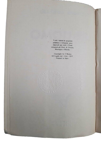 Un volume in brossura editoriale, mm 194x134; pp. 632. Seconda edizione, con dedica autografa dell'autore fatta a Milano a Pasqua del 1938. Rif.: IT\ICCU\RAV\0763063. OCLC, 1070912052. Cond.: esemplare molto buono.