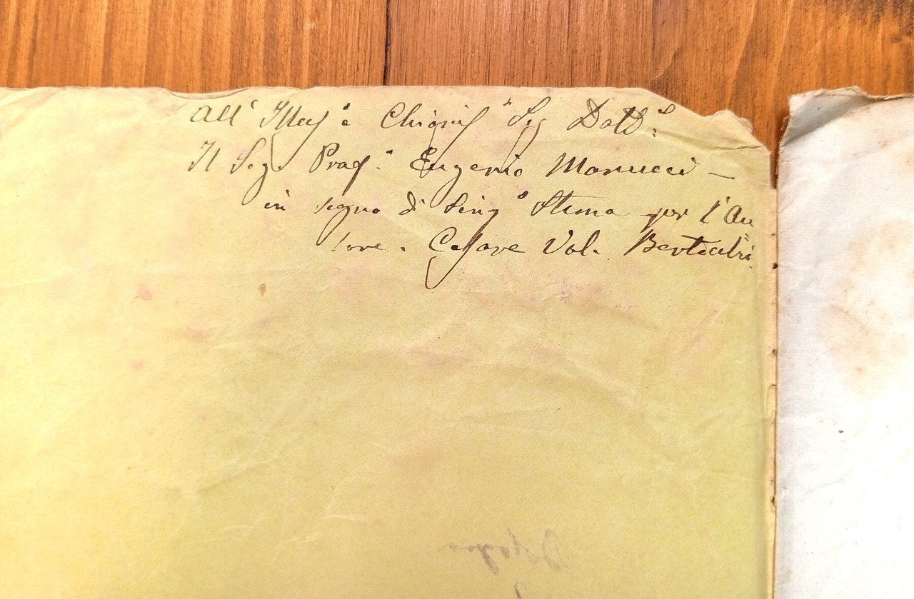 Estratto dagli Opuscoli Religiosi, Letterarj e Morali, serie III, tomo VI - Brossura originale in copertina muta gialla con nota manoscritta al piatto e invio omaggio dell'autore alla sguardia, 8 pagine. Curioso e buffo componimento di 224 versi intorno al tradizionale adagio su Bologna "dotta e grassa". Normali segni d'uso e del tempo, ma esemplare complessivamente ben conservato di un raro opuscolo ottocentesco.