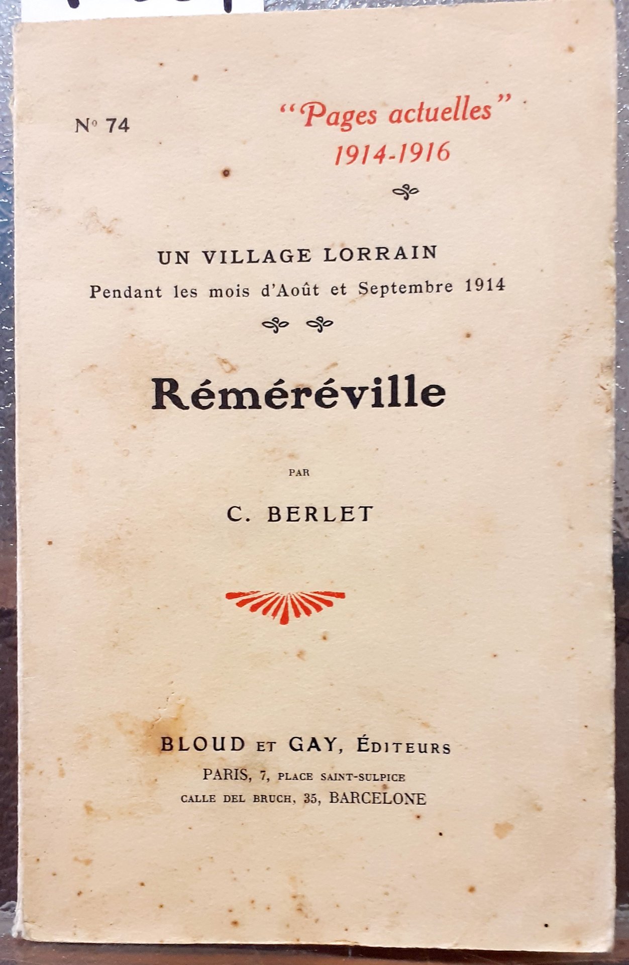 UN VILLAGE LORRAIN: PENDANT LES MOIS D'AOUT ET SEPTEMBRE 1914. REMEREVILLE.