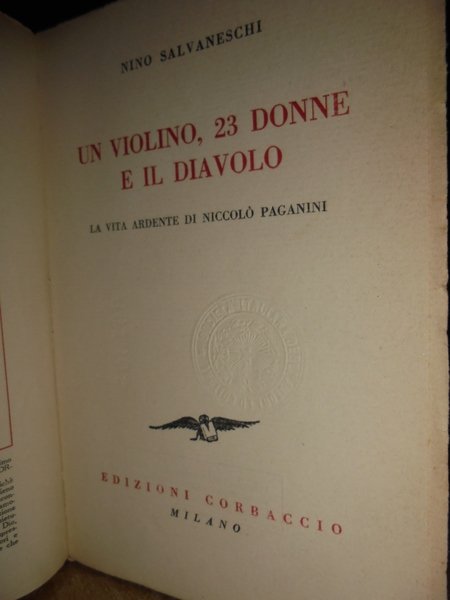 Nino, Salvaneschi. Milano, Edizioni Corbaccio, 1938. Un violino 23 donne e il diavolo. Prima edizione. In-16°, cart. edit. 281, (2) pp. Usuali segni del tempo ma ben conservato. Neg. pacco 4. carc.