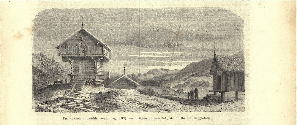 Una cascina di Bamble (Norvegia). Stampa 1863.