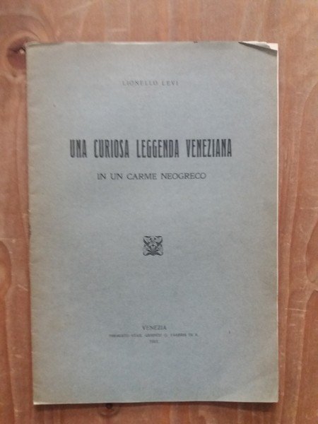 Brossura, cm. 23 x 16,3, pp.18.Estratto da L'Ateneo Veneto, Anno XXXIV, Vol. II, Fasc. 2-3, Settembre-Dicembre1911.