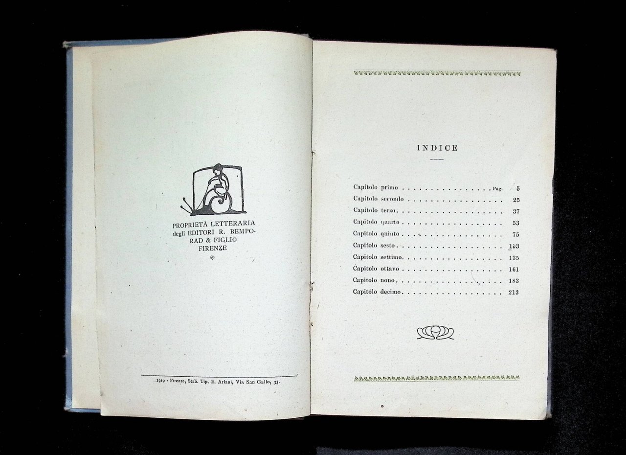 Editore: Bemporad & Figlio Firenze Collana: 65^ migliaio Formato: in 16^, rilegato a tutta tela, pp. 241 Data di Pubblicazione: 1919 Discrete condizioni compatibilmente con l'età, qualche segno del tempo visibile in foto
