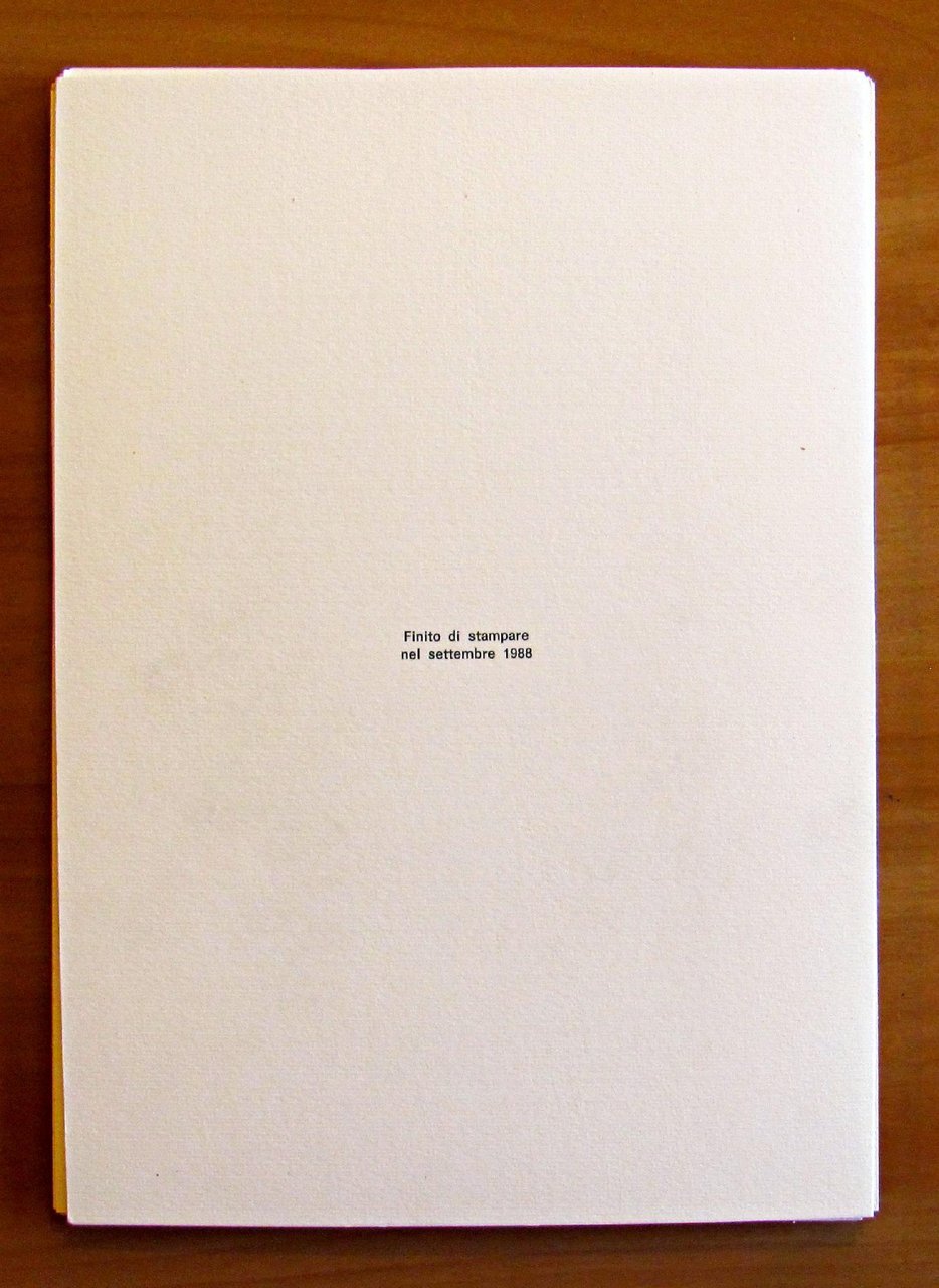 4 litografie sciolte, protette da velina, in b/n numerate 198/200 e firmate Coca. Ed. Il Ventaglio - Roma, 1988. Cartella editoriale contenente l'opera in quartine sciolte. 21,5x30; pp. 2 di presentazione di Anna Maria Carli e 5 di poesia con introduzione di Anna Veruda. RARO. OTTIMO STATO , Ottimo (Fine)