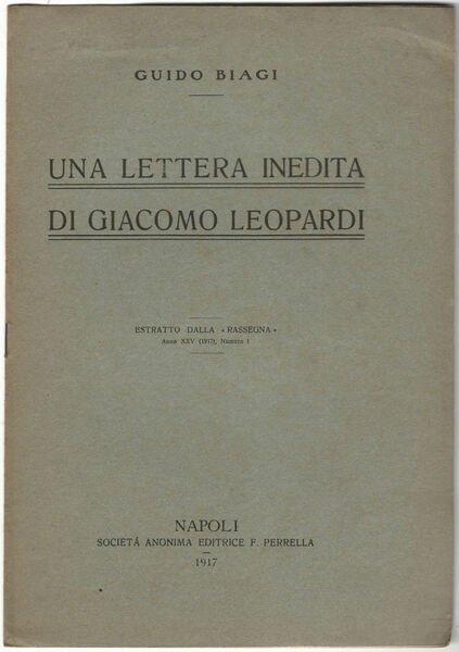 Una lettera inedita di Giacomo Leopardi.