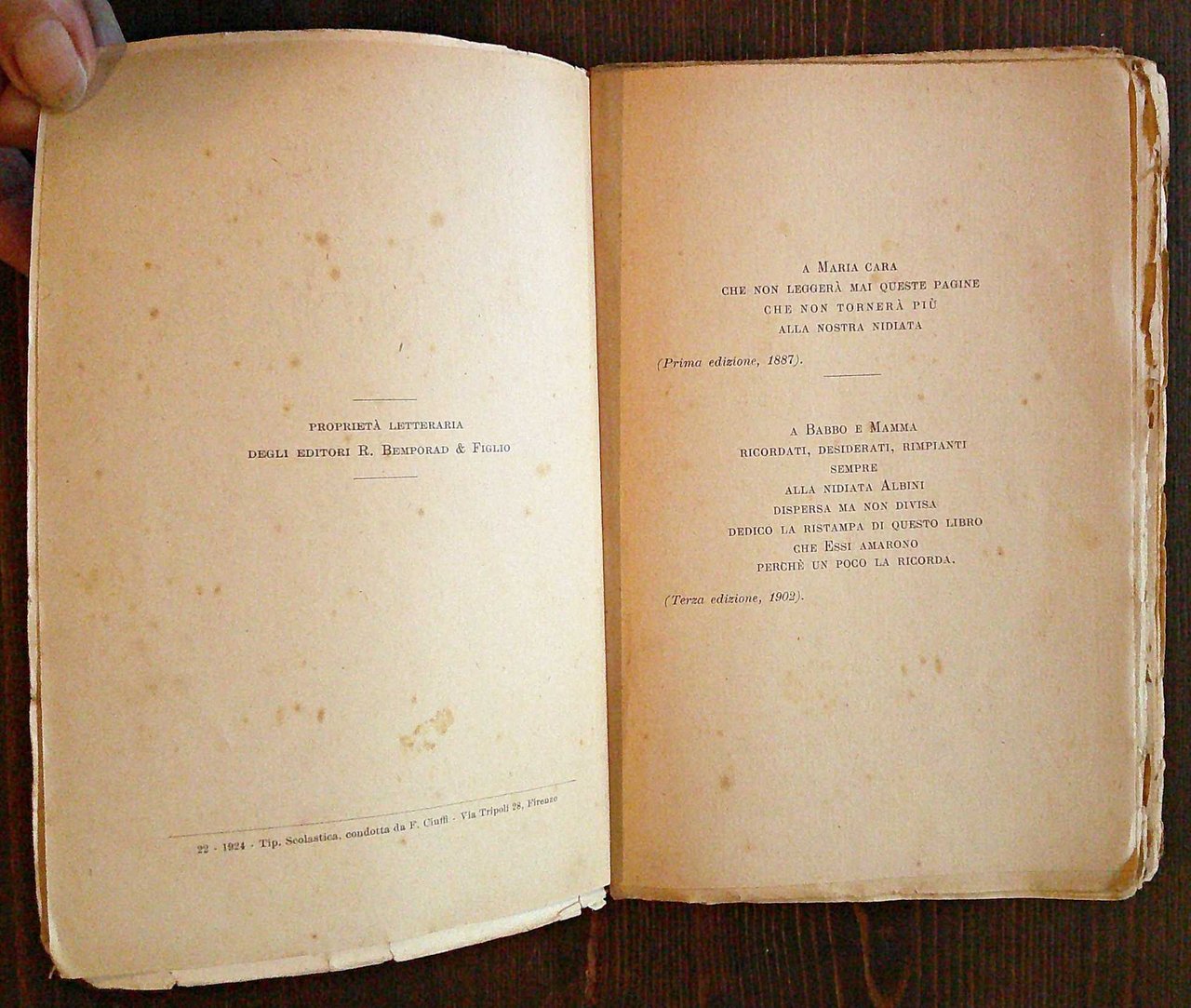 Copertina di M. Battigelli. Ed. Bemporad - Firenze, VIII edizione 1924. Brossura editoriale con segni del tempo alle copertine e lievi fioriture in qualche pagina. 13x19,5; pp.333. Buonissimo stato. , Molto buono (Very Good)