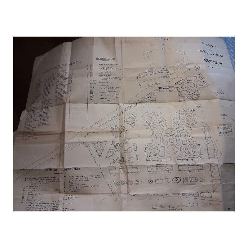 IN 16', mz. perg. con ang., tass. e tit. in oro al dorso, pp.240+ cartina sciolta f.t. in fine; sunti biografici degli uomini illustri i cui busti adornano il giardino pubblico di Roma-con annessa pianta. Abrasioni all'unghia e al piatto post, interno in buono stato, segni del tempo, cartina molto vissuta, timbro sbiadito al frontespizio. ***Due to bureaucratic reasons, books dated over 70 years old cannot be immediately exported, please contact us before placing the order.***