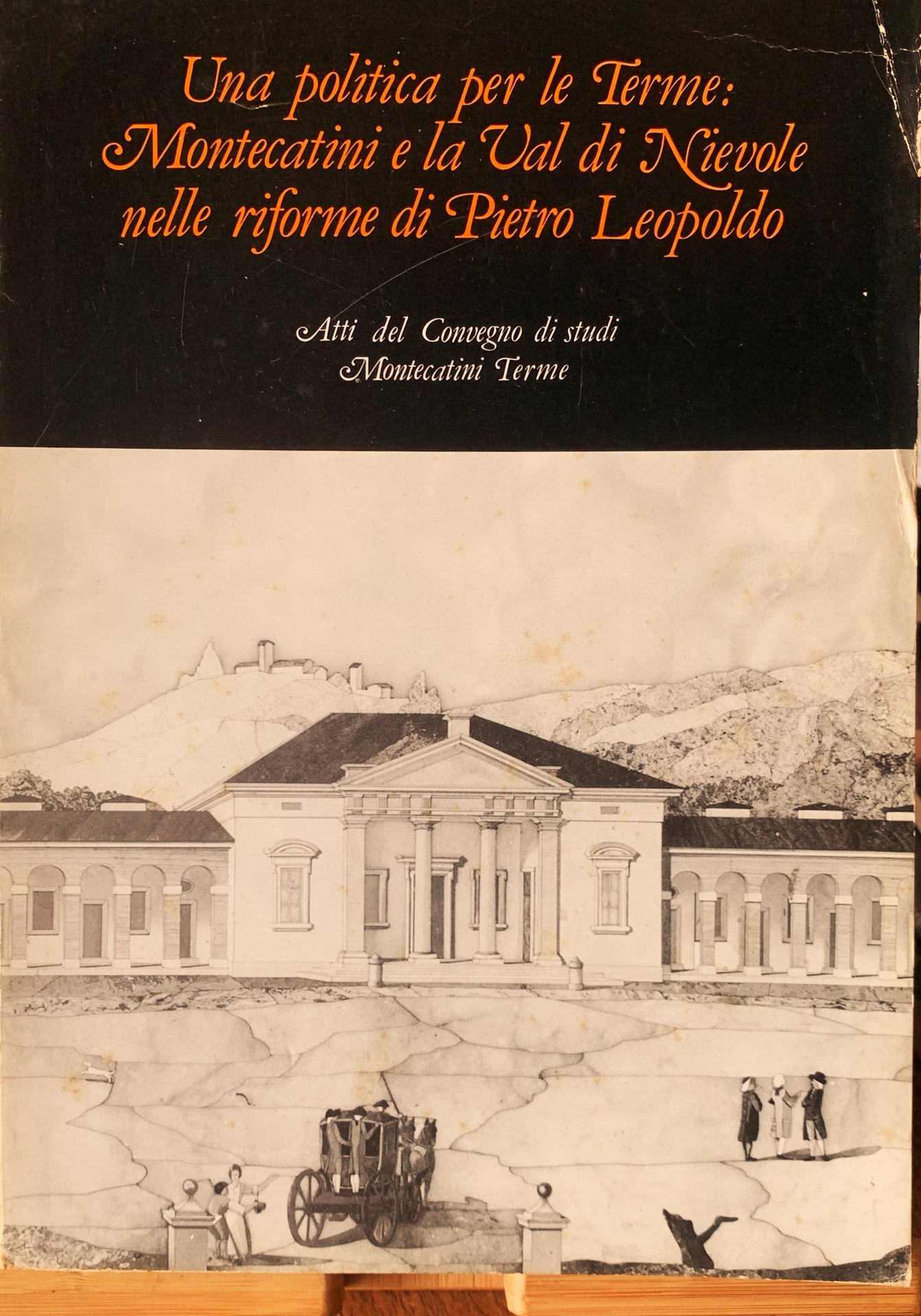 I ed. (Luglio 1984). Atti del Convegno di Studi Montecatini Terme 25-26-27 ottobre 1984. VIII/276+(16) patinate con illustrazioni/brossura patinata con grafica in nero/arancione/bianco e con illustrazione in b/n al primo piatto (una veduta con la facciata principale della palazzina di mezzo delle Terme Leopoldine. Disegno). Con tabelle in nero nel testo e illustrazioni in b/n in tavole patinate f.t.. Stato buono (usura della copertina ai margini - rottura obliqua al dorso riparata con colla - pagine leggermente ingiallite). Indice: Presentazione; Bruno Bacchelli, Assessore alla Cultura (Aprile 1985) - Elenco dei partecipanti al Convegno - Elenco delle abbreviazioni - Relazioni (Elena Fasano Guarini; Il territorio della Valdinievole alla vigilia delle bonifiche leopoldine - Marco Della Pina; Forme degli insediamenti e distribuzione della popolazione nella Valdinievole in età moderna - Leonardo Rombai; La bonifica della Valdinievole nell'età leopoldina. Dal controllo 'contingente' delle acque alla 'bonifica integrale' - Leandro Conte; Proprietà fondiaria e forze produttive in Val di Nievole alla fine del XVIII secolo - Francesco Martelli; Cittadini, nobiltà e riforma comunicativa a Pescia - Carlo Cresti; Il realismo politico di Pietro Leopoldo nella vicenda progettuale e realizzativa dei Bagni di Montecatini - Gabriella Orefice; Aspetti e personaggi del cantiere leopoldino dei Bagni - Luigi Zangheri; Le città termali degli Asburgo - Vieri Becagli; Da San Giuliano a Montecatini. Lo sfruttamento delle risorse termali nella Toscana del Settecento - Tiziano Arrigoni; Terme e termalismo nella Toscana del Settecento - Ferdinando Abbri; Alessandro Bicchierai e le terme di Montecatini - Alessandra Contini; Ceto di governo locale e riforma comunicativa in Val di Nievole) - Illustrazioni.