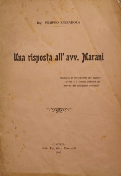 Gorizia,1902.In 8¡,20 pp.pi indice.Brossura editoriale con titoli al piatto anteriore.Ordinari segni d'uso e di tempo,ma il volumetto si presenta integro.