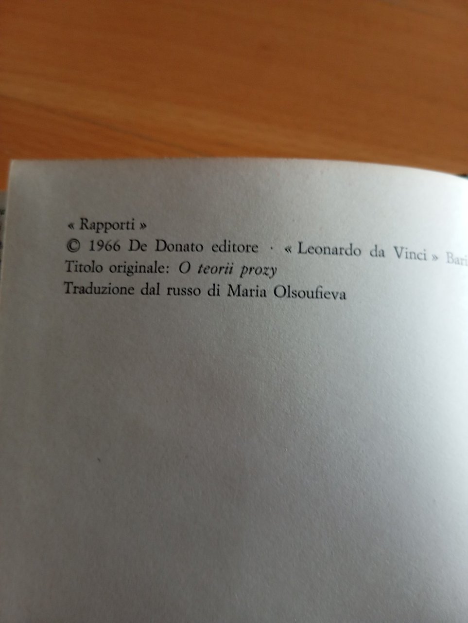 Una teoria della prosa, Viktor Sklovskij, De Donato, 1966