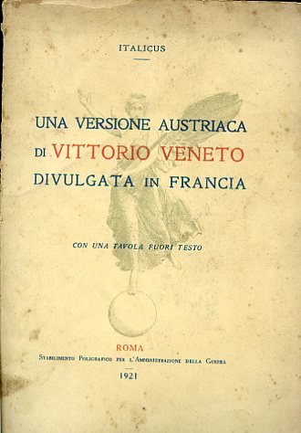 In-8°, pp. 39, brossura editoriale illustrata. Una carta della battaglia di Vittorio Veneto su doppia pag. in fine. Fioriture e tracce del tempo alla brossura, ma discreto stato. Prima edizione. L'identità dell'autore è esplicitata nella scheda catalografica di SBN / ICCU.