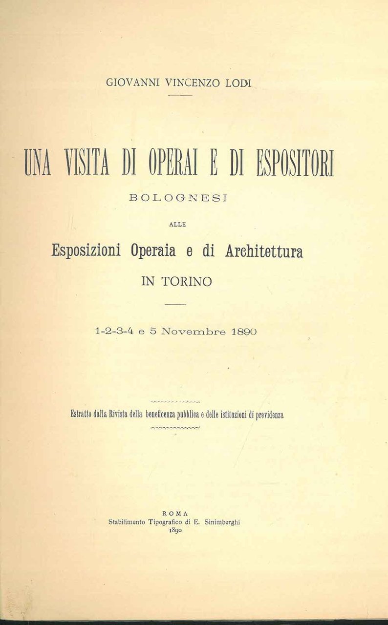 Una visita di operai e di espositori Bolognesi alle Esposizioni Operaia e di Architettura in Torino