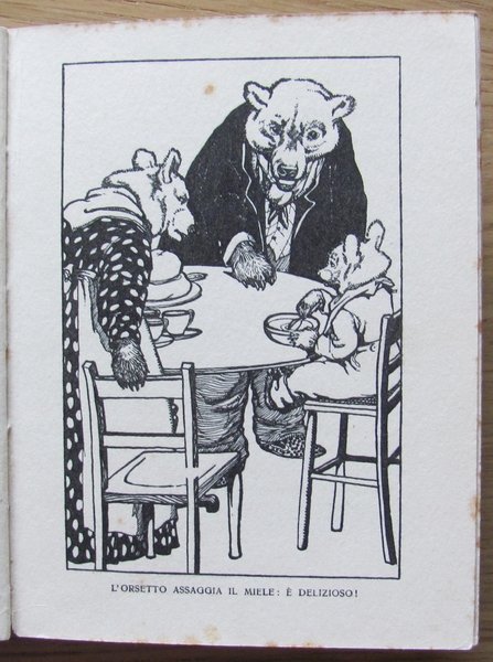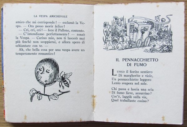 Collana "Piccoli Libri Giganti". Illustrazioni in b/n n.t., anche a piena pagina, e 1 tavola a colori in antiporta. Edizioni Salani - Firenze, 1937. Cartonato editoriale con lievi usure in alto alla cerniera anteriore. Dedica del tempo all'occhietto e leggere fioriture del tempo a qualche pagina. 14x18,5; pp.92 non numerate. Buonissimo stato. , Buono (Good)