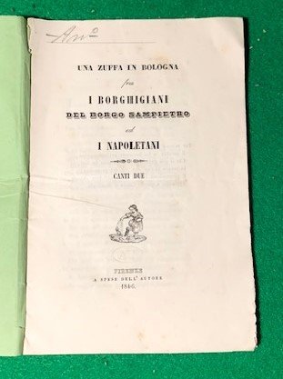 In 4°; 36 pp. Brossura muta verde. Piccolo timbretto di collezzione privata con le iniziali A. T. al frontespizio. Esemplare in buone-ottime condizioni di conservazione. Prima ed unica edizione di questo canta del celebre patriota e politico italiano, Giuseppe Galletti (Bologna, 11 agosto 1798 Bologna, 26 luglio 1873). Galletti prese parte ai moti carbonari emiliani del 1831, facendo parte dell'Assemblea delle Provincie Unite Italiane. Nel 1844 venne arrestato per la sua attività politica e nel 1845 venne condannato all'ergastolo ma fu, ben presto amnistiato, divenendo, poi, ministro di Polizia nello Stato Pontificio, durante i tumulti del 1848. Nel 1849 fu Presidente dell'Assemblea costituente che, inaugurata il 5 febbraio, il 9 dello stesso mese approvò il Decreto fondamentale che istituiva la Repubblica Romana. Prima ed unica edizione.