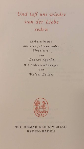 Copertina Rigida, incorniciata.<BR>Lingua tedesco<BR>Condizione libro molto buone. Retro dorso leggermente strappato.<BR>Prima edizione con disegni a penna e inchiostro di Walter Becker. 132 pg.