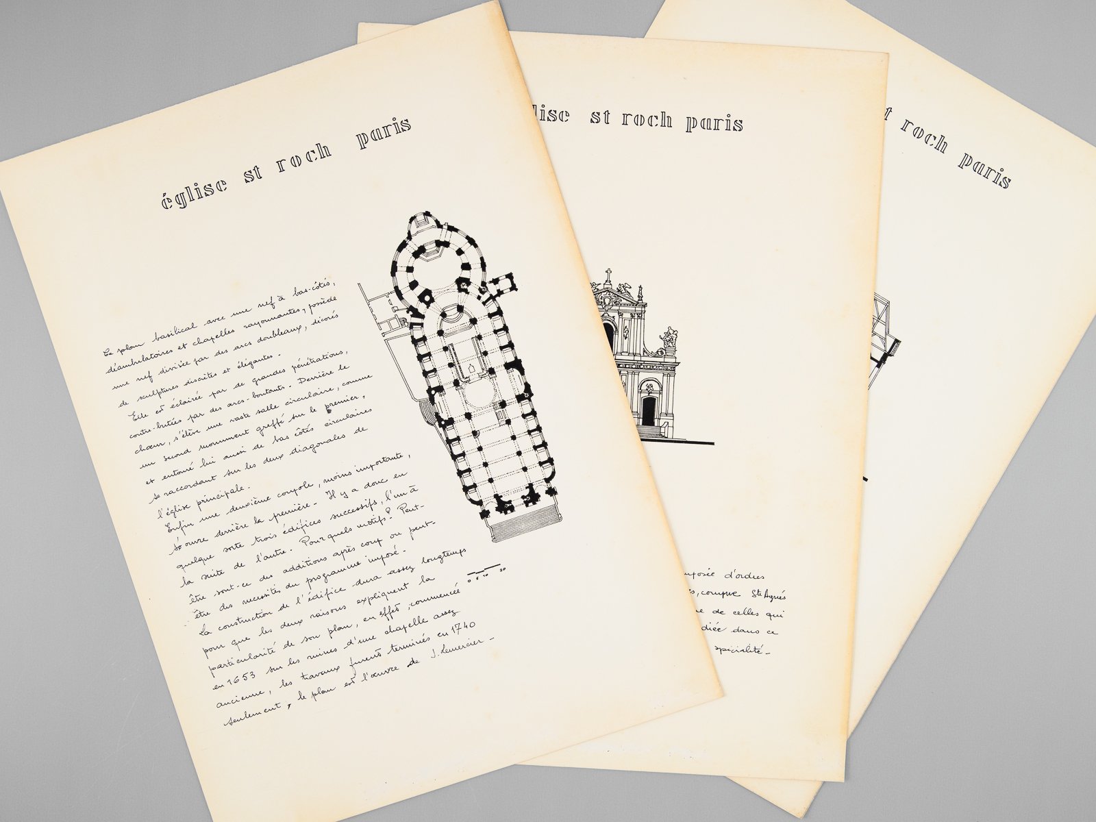 Une Eglise du XVIIe XVIIIe [ L'Eglise St Roch à Paris - Dossier manuscrit d'un élève architecte de 1ère classe de l'ERAB (Ecole Régionale d'Architecture de Bordeaux) en 1961 ]