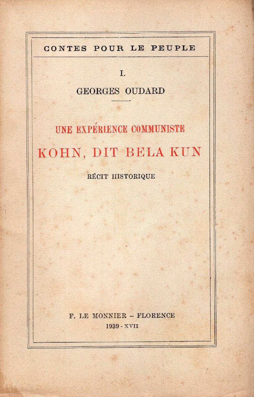 Une experience communiste. Kohn, dit Bela Kun. Recit historique