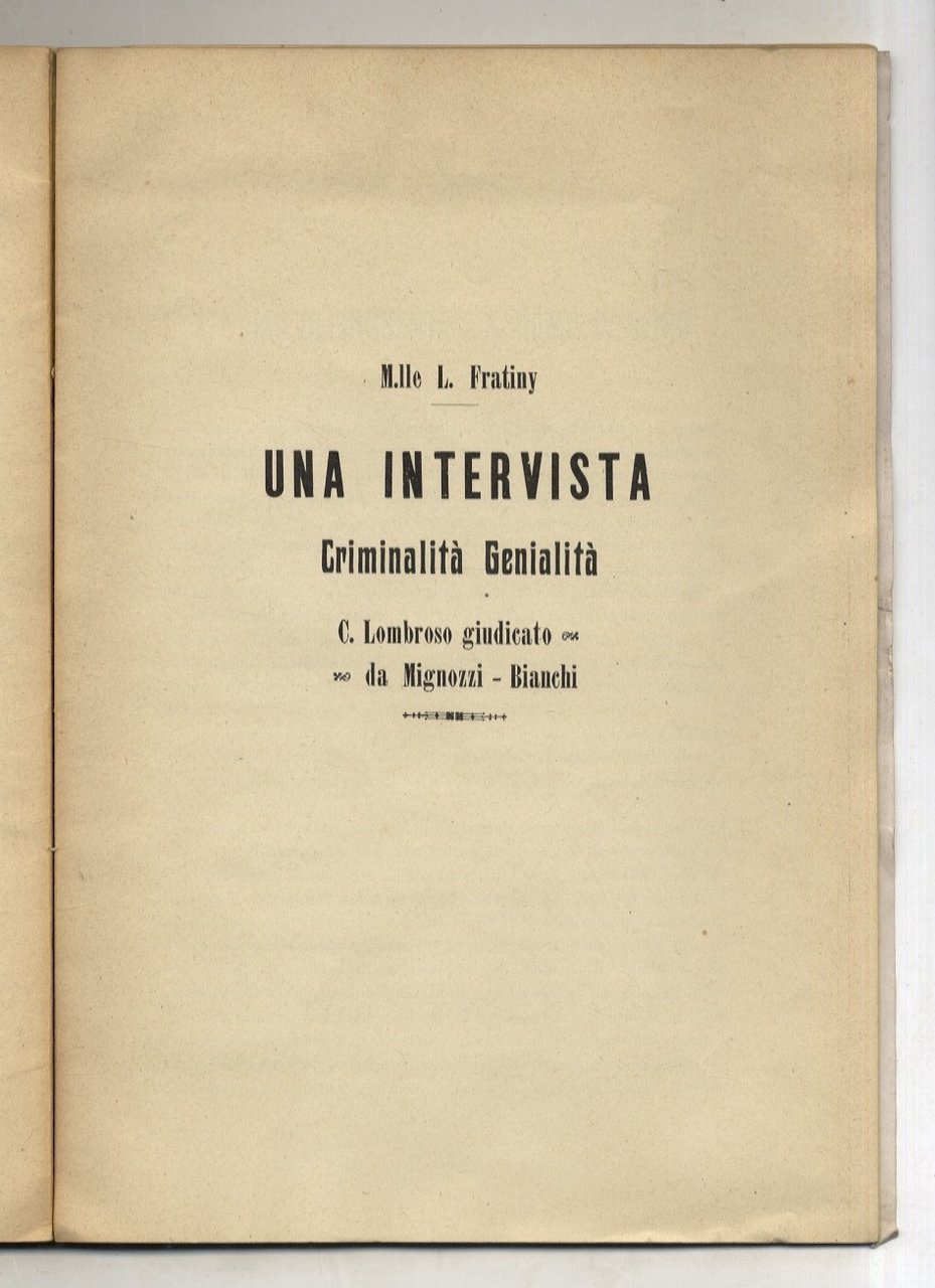 Une interview. Texte Français et en Italien. Criminalité Genialité. C. Lombroso jugé par Mignozzi-Bianchi.