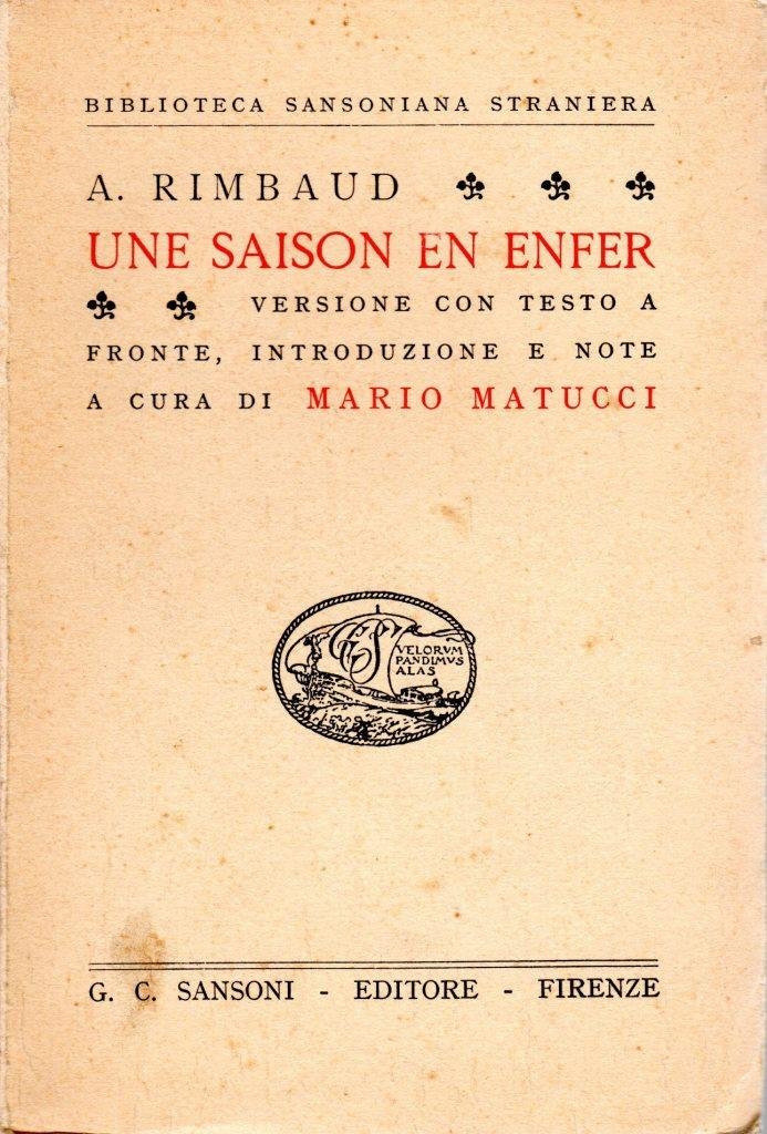 Une saison en enfer, edizione novembre 1955, pp. 112, formato 11 x 16,5.<BR>Copertina morbida di colore beige con titoli in nero e rosso al piatto anteriore e sul dorso. Versione con testo a fronte. Introduzione e note a cura di Mario Matucci. <BR><BR>Lievi fioriture al piatto anteriore. Nel complesso ottime condizioni.