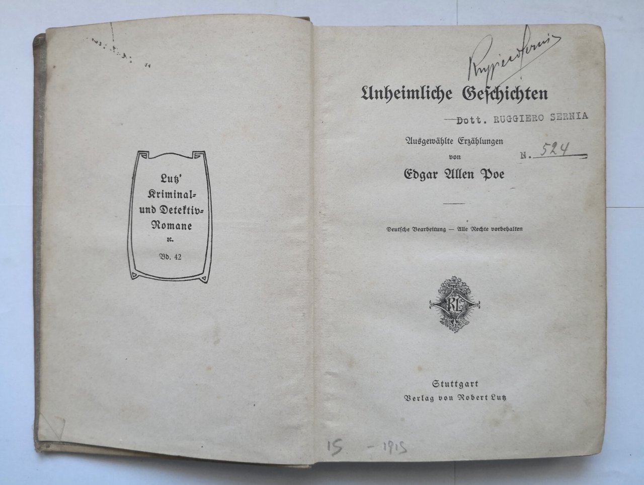 UNHEIMLICHE GESCHICHTEN di Edgar Allen Poe 1915 Robert Luy Libro storie spavento