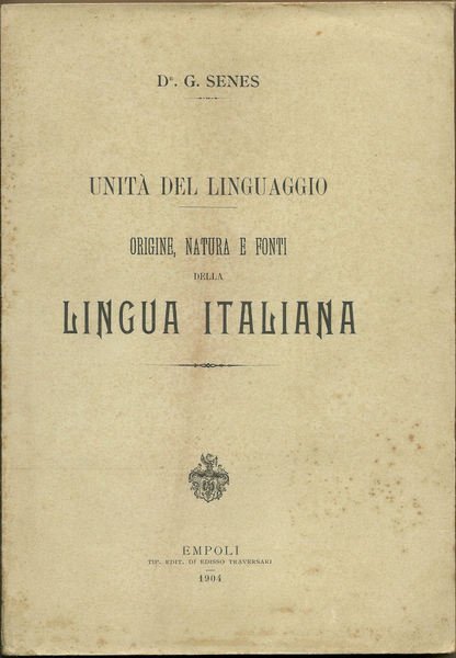 Unità del linguaggio. Origine, natura e fonti della lingua italiana.