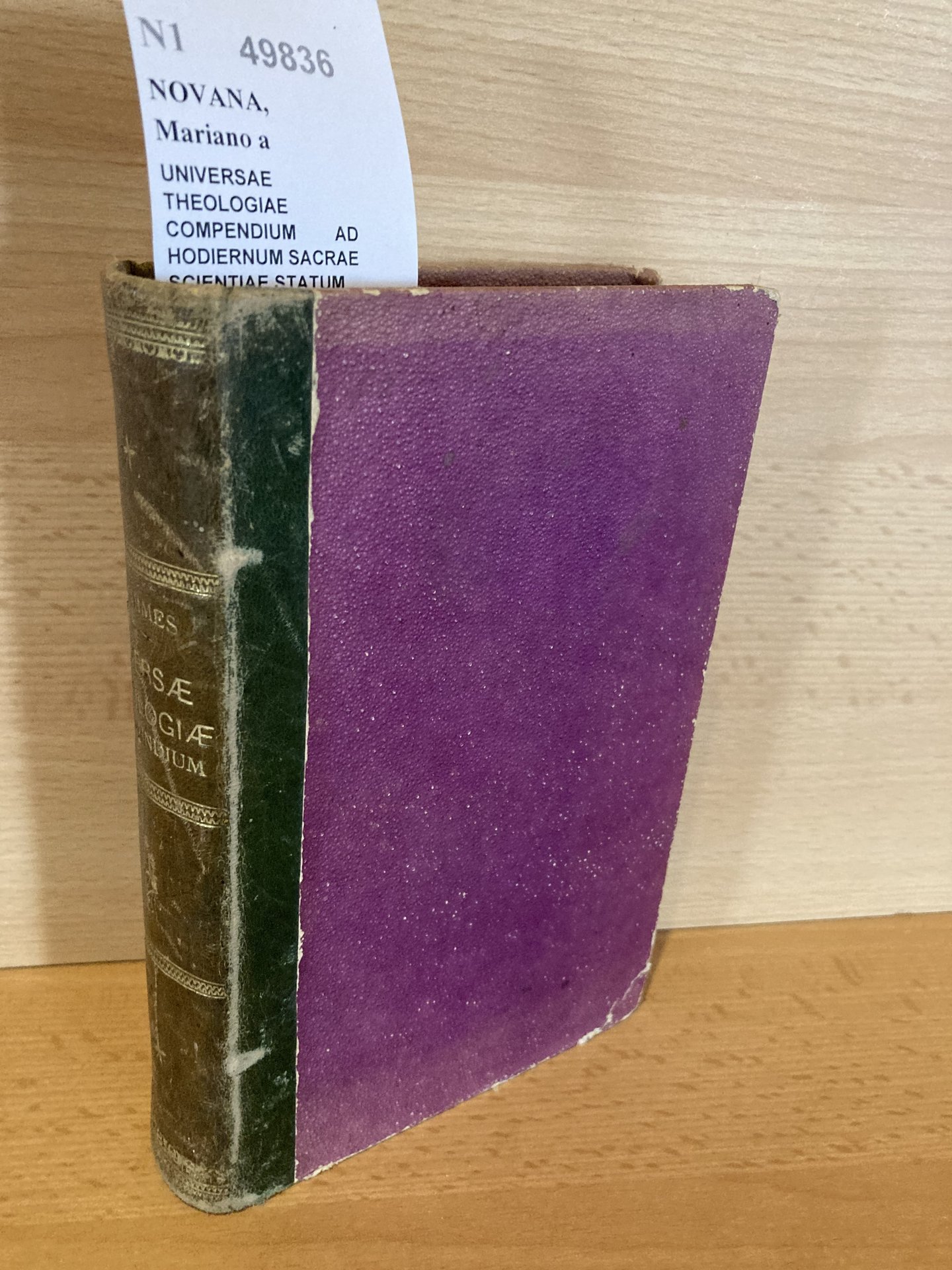 NOVANA, Mariano a UNIVERSAE THEOLOGIAE COMPENDIUM AD HODIERNUM SACRAE SCIENTIAE STATUM Lethielleux. Paris 1877 II + 639 p. (18,5 cm) Enc. holandesa. Bien. Sello de anterior propietario N1 (Ref.49836) latin teologia