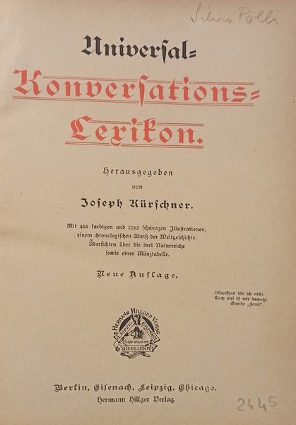 Copertina Rigida, rilegata<BR>Condizioni Segni di usura<BR>Lingua Tedesco<BR>Terza edizione dizionario storico culturale con con tavole del 19esimo secolo e 2500 illustrazioni. circa 2000 pagine, tela rossa, libro standard di grande formato,<BR>scrittura in tedesco antico.