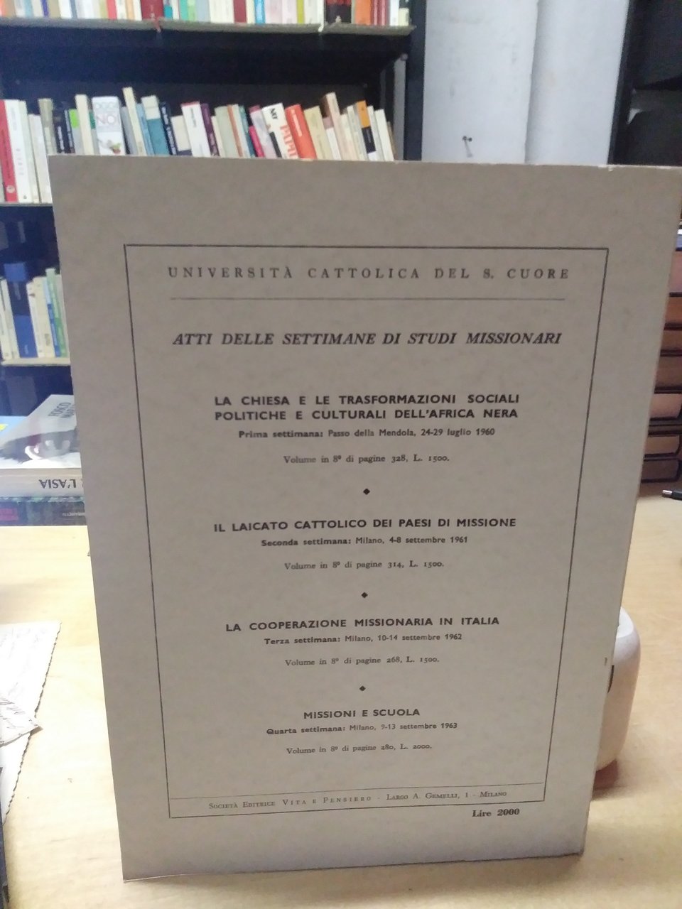 università cattolica del sacro cuore missioni e scuola atti della quarta settimana di studi missionari . Milano, vita e pensiero 1964 italiano, pp.258 buono stato di conservazione