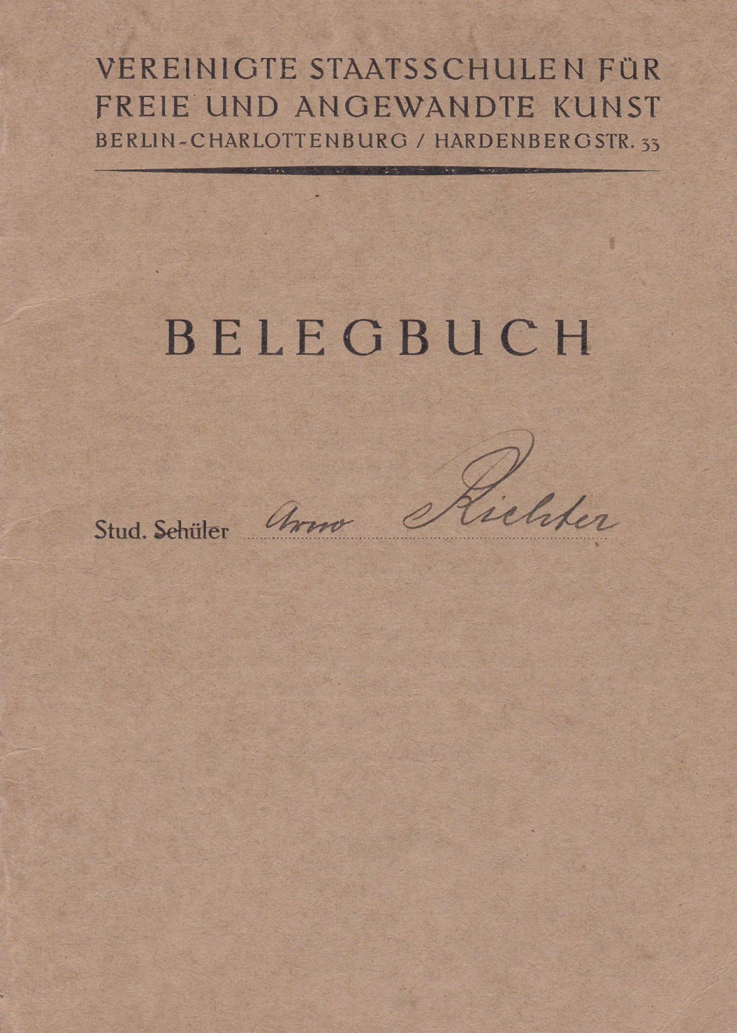 Es handelt sich um drei universitäre Dokumente des späteren Künstlers Arno Richter. Ausgegeben wurden sie von den damaligen Vereinigten Staatsschulen für Freie und Angewandte Kunst in Berlin-Charlottenburg, dem Zusammenschluß der Hochschule für die bildenden Künste und der Unterrichtsanstalt des Kunstgewerbe-Museums. Erhalten sind für den Studenten Arno Richter ein Belegbuch (1929), ein Hochschulausweis (1926-1929) sowie eine Hospitanten-Ausweiskarte (1936-1938) mit handschriftlichen Eintragungen. Alle Dokumente tragen die Stempel der jeweiligen politischen Systeme, sowohl vor als auch nach 1933. Das Belegbuch führt 1929 auch einen von Richter belegten Kurs bei Emil Orlik auf, als dessen Schüler Richter sich selbst sah. Aus dem Studenten Arno Richter wurde später ein Kostümbildner, Bühnenbildner und Filmarchitekt. Insbesondere in den späten 1920er und 1930er Jahren war seine Arbeit für Theater und Film von hoher Intensität geprägt bis er im Jahr 1939 emigrierte. So schuf er beispielsweise für die Filme "Der Rebell" (Luis Trenker, 1932) und "SOS Eisberg" (Arnold Fanck, 1933) die Bauten oder für den NS-Staatsfilm "Robert Koch, der Bekämpfer des Todes" (Hans Steinhoff, 1939) die Kostüme. Interessante Berliner Hochschul-Archivalien aus der späten Weimarer Zeit und dem Nationalsozialismus!