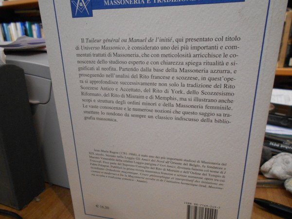 (Massoneria) Jean Marie Ragon. Roma, Atanòr, 2009. Universo Massonico. Istruzioni iniziatiche. In-8° piccolo, cartoncino edit. 270 pp. In stato di nuovo. Neg. Mass. mob. P.
