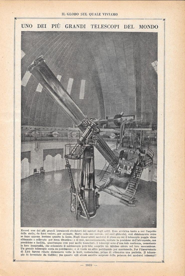 Uno dei più grandi telescopi del mondo. Stampa 1923