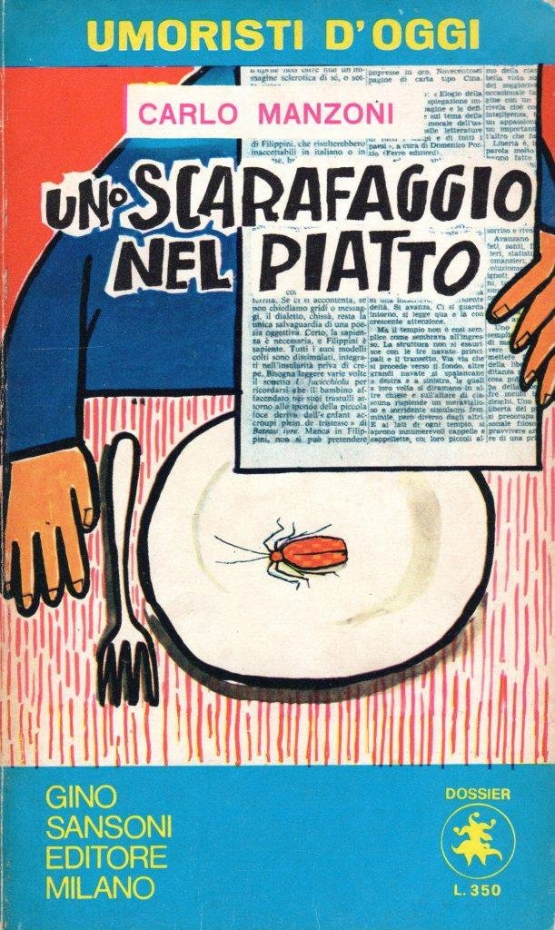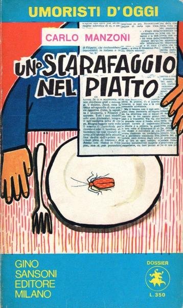 Uno scarafaggio nel piatto, prima edizione giugno 1971, pp. 157, formato 11,5 x 19. <BR>Copertina morbida illustrata da Carlo Manzoni con titoli in nero, rosa e giallo al piatto anteriore e in nero sul dorso.All'interno presenti numerose tavole illustrate. In seconda pagina presente firma di appartenenza dello scrittore e poeta Antonio Pinghelli. <BR>Brunitura del dorso. Lieve ingiallimento delle pagine. Nel complesso buone condizioni.