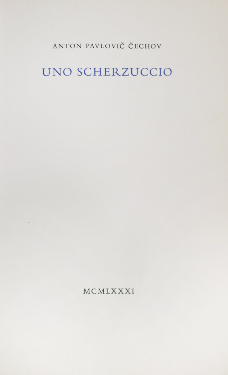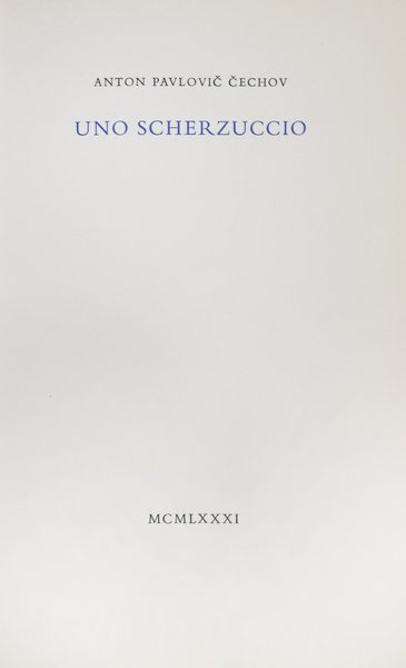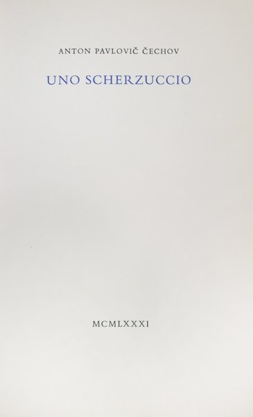 In-8 p., cartoncino muto editoriale, pp. 15,(5). Breve racconto di Anton Cechov, datato 1886. Bella ediz. in tiratura limitata di 40 esemplare numer. Il ns., XIX, è molto ben conservato.